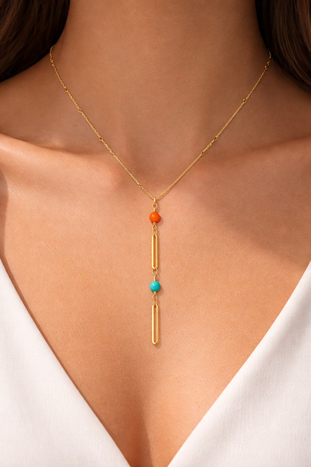 Toptan Altın Renk Ezme Zincir İnci Ataç Ye Model Çelik Kolye – 3833