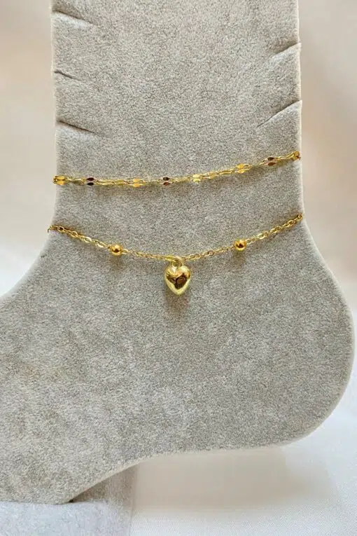 Toptan Altın Renk Nazar Göz Kalp Model Singapur Ve Top Zincir Çelik Halhal – 3298
