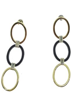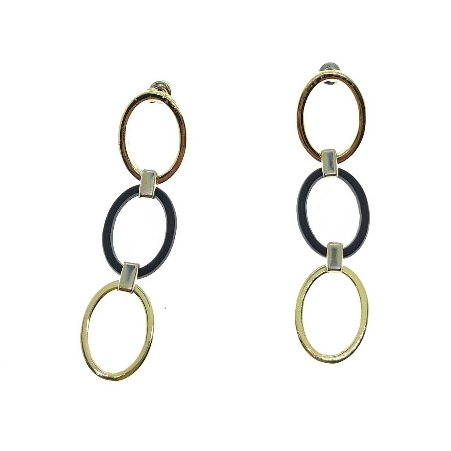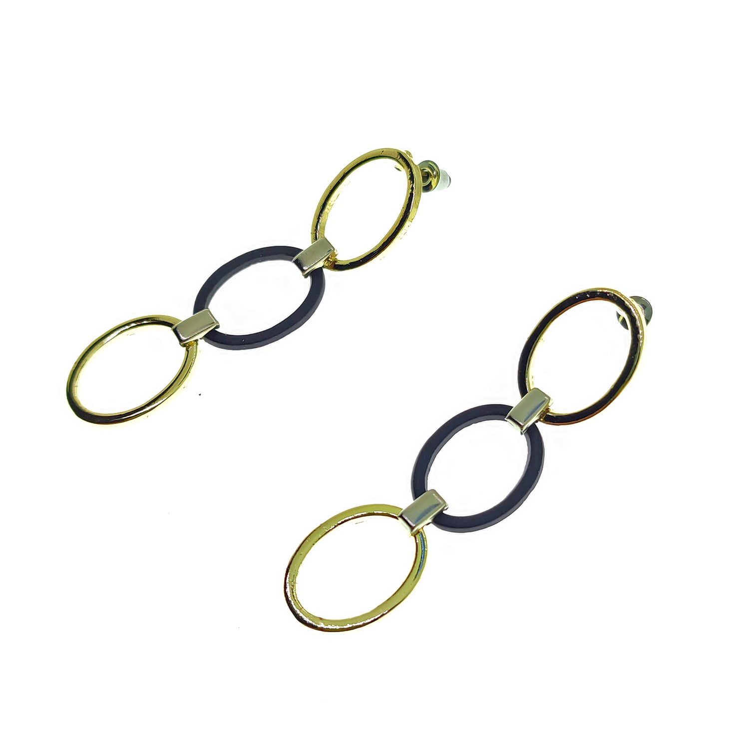 Toptan Altın Renk siyah Boncuk Yuvarlak Pullu Şık Sallantılı El İşi Kombin Küpe – 2221