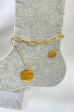 Toptan Altın Renk Pullu Model Ataç Ve Sf Zincir Çelik Halhal – 3252