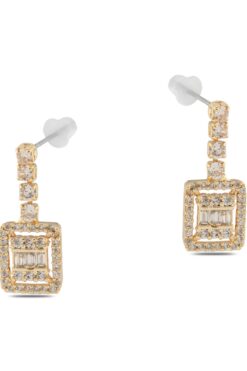 Toptan Altın Renk Şerit Sallantılı Çivili Zirkon Küpe – 1323