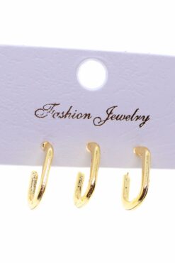Toptan Altın Renk Üçlü Kombin Küpe – 1845