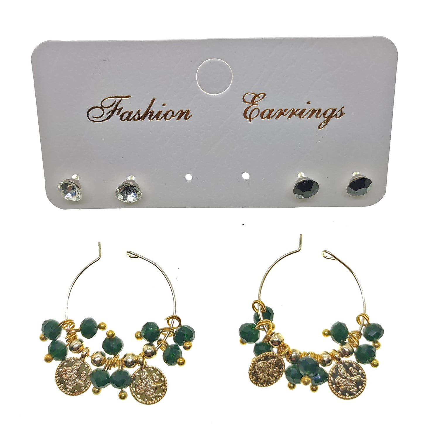 Toptan Altın Renk Turkuaz Boncuk Yuvarlak Pullu Şık Sallantılı El İşi Kombin Küpe – 2219