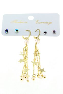 Toptan Altın Renk Yıldız Püsküllü Kombin Şeffaf Boncuk Küpe – 2832