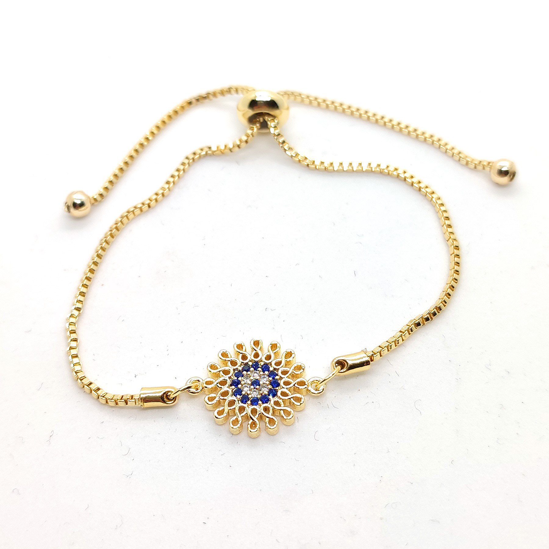 Toptan Altın Renk Zirkon Taşlı Nazar Göz Motifli Asansör Bileklik