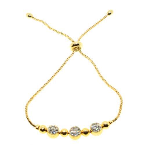Toptan Altın Renk Zirkon Taşlı Üçlü Macun Asansör Bileklik – 1033