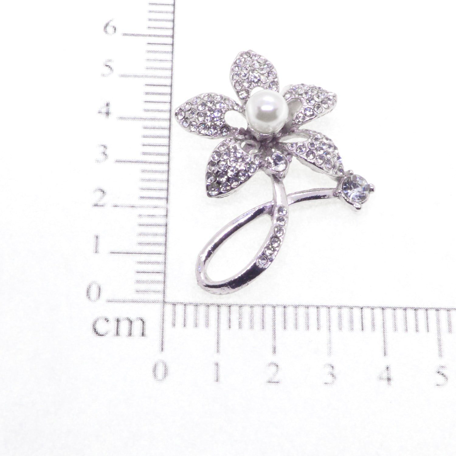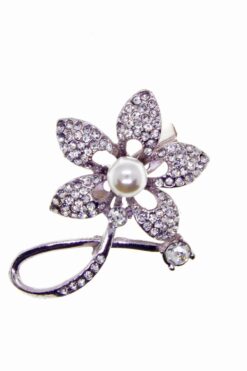 Toptan Gümüş Renk Çiçek Model İncili Broş – 2356