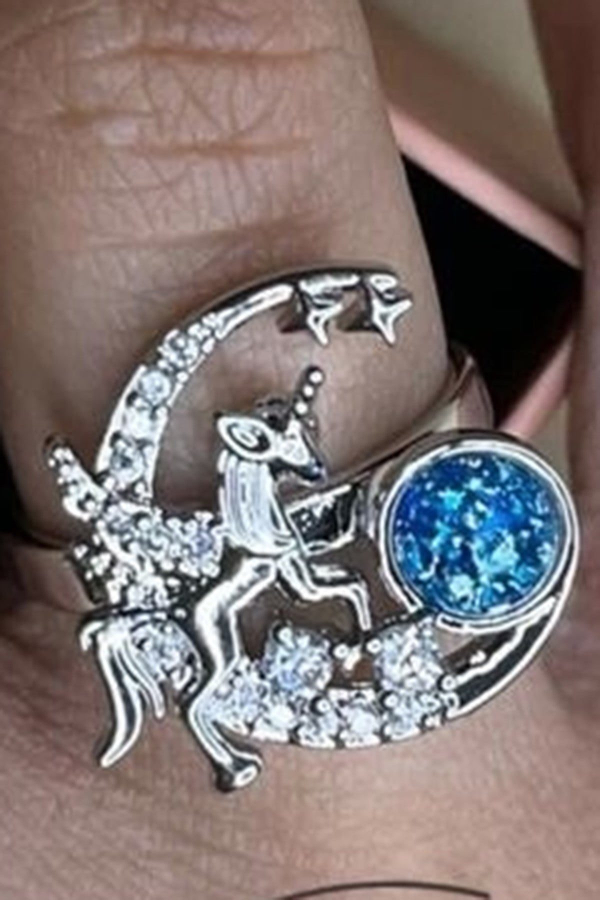 Toptan Gümüş Renk Mavi Küre Ve Unicorn Model Gezegen Zirkon Taşlı Çelik Ayarlanabilir Çelik Yüzük- 3098