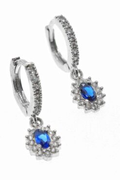 Toptan Gümüş Renk Oval Ortası Mavi Mengeç Zirkon Küpe – 2007
