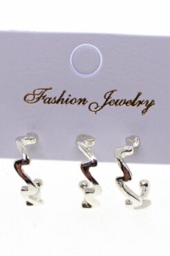 Toptan Gümüş Renk Üçlü Kombin Küpe – 1841