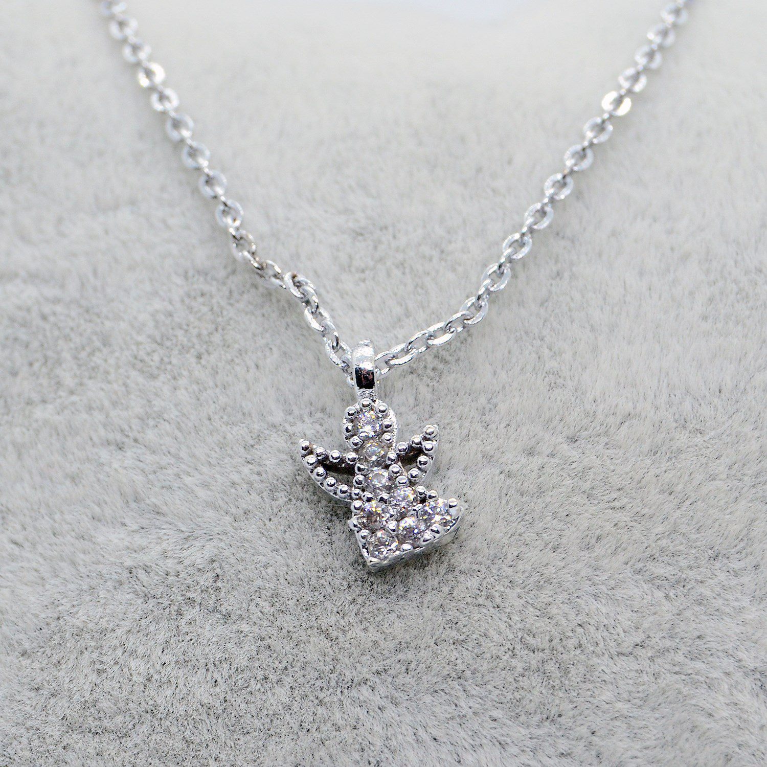 Toptan Gümüş Renk Zirkon Taşlı Melek Kolye 778